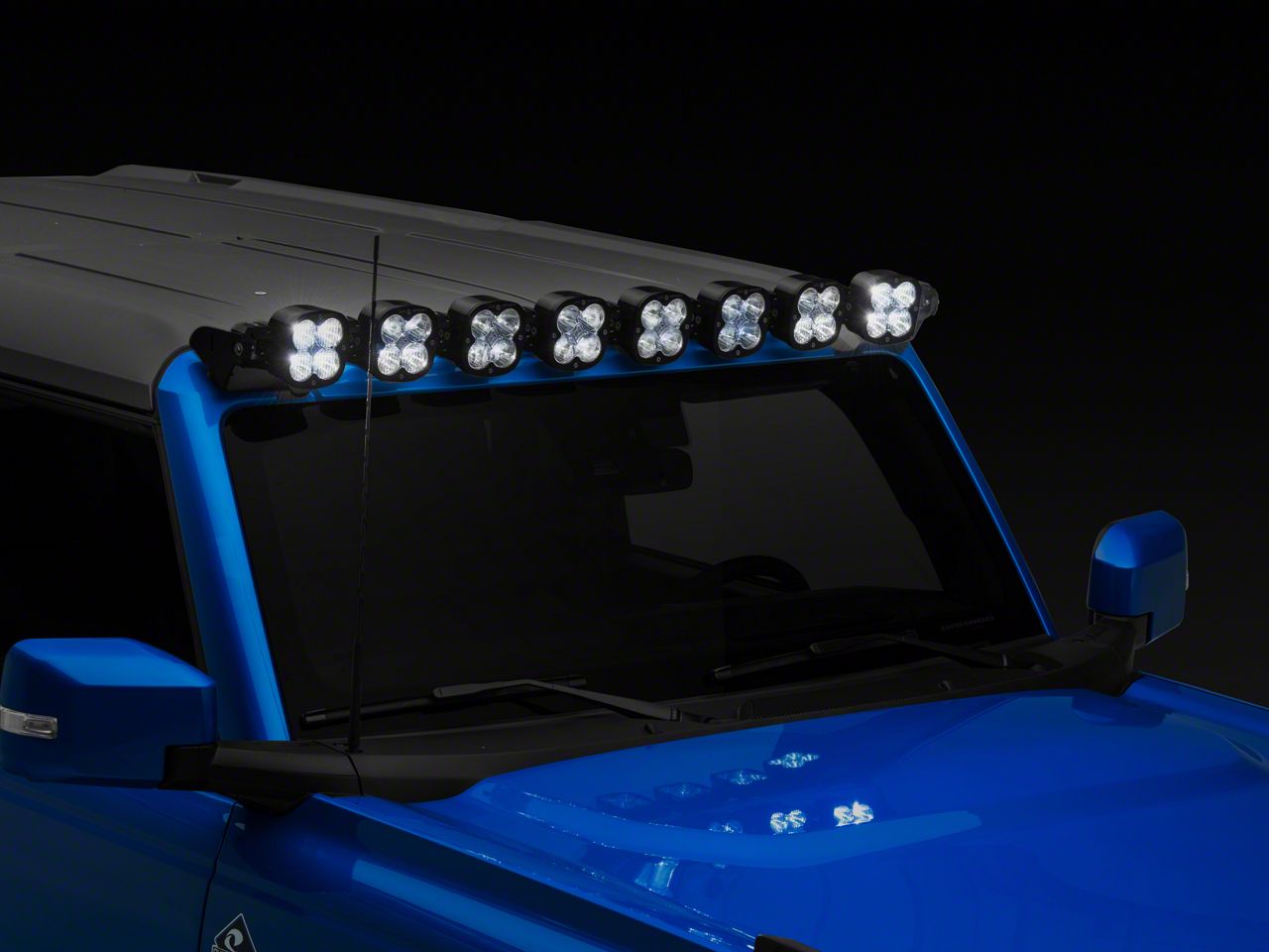 Full Adjustment, Total Performance. The Baja Designs XL Linkable Light Bar was designed for the enthusiast looking to take charge with a light package that is completely customizable for their needs. This kit includes 8 XL Sports, Links, vehicle specific mounting brackets, upfitter style wiring harness and rock guards. A pre-load support bracket is included to ensure stiffness in the most extreme terrain. This kit is a turn key system for the Bronco owner that is looking to take down the night, and give a standoff appearance to their vehicle.