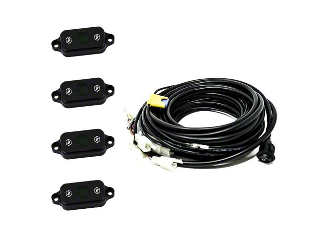 Description. Fog Light; Our Universal Rock Light Kit takes the guess work out of buying wiring and trying to figure out how to pin relays. All of the lengths are pre-cut to reach all four corners of your small to mid-sized vehicle with some wiggle room on each lead to route the wiring any desired way. This kit includes the rock lights, and wiring for a truly turn key kit.