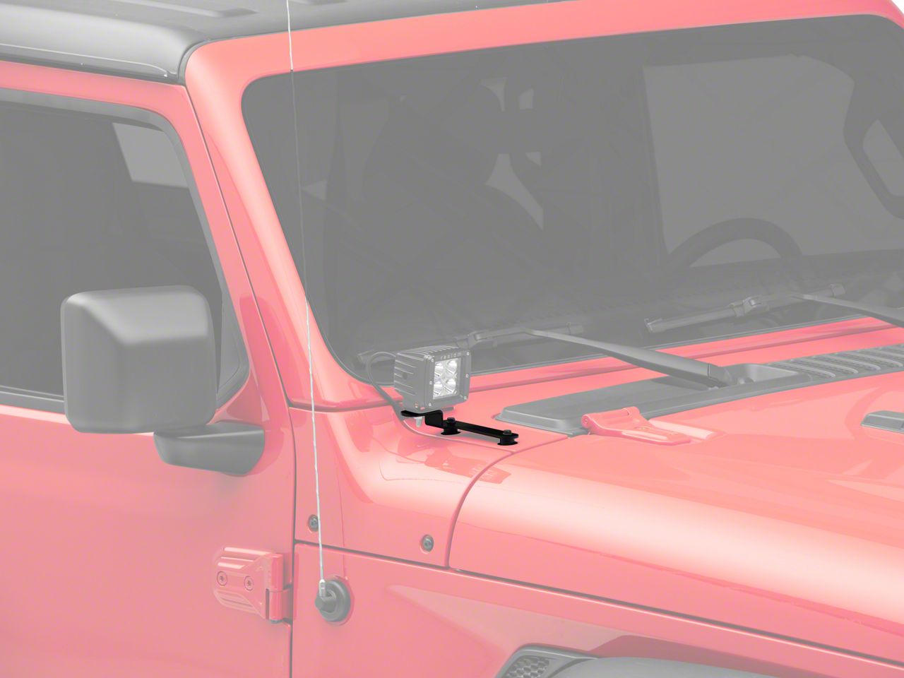 Aggressive A-Pillar Off-Road Light Mounts. Prepare your Jeep for battle and rugged off-road adventures using this Jeep Gladiator A-Pillar light mounting kit. The kit includes a pair of brackets designed to attach to the factory bolt locations on the a-pillars on your Gladiator. These mounts install easily on 2020-2026 models, and they allow you to attach Squadron-series off-road lights to your Jeep in a convenient location for extended vision and a more aggressive style.