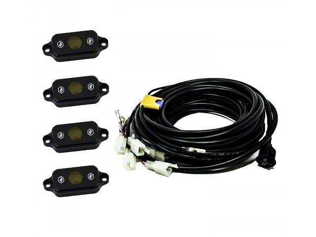 Description. Fog Light; Our Universal Rock Light Kit takes the guess work out of buying wiring and trying to figure out how to pin relays. All of the lengths are pre-cut to reach all four corners of your small to mid-sized vehicle with some wiggle room on each lead to route the wiring any desired way. This kit includes the rock lights, and wiring for a truly turn key kit.