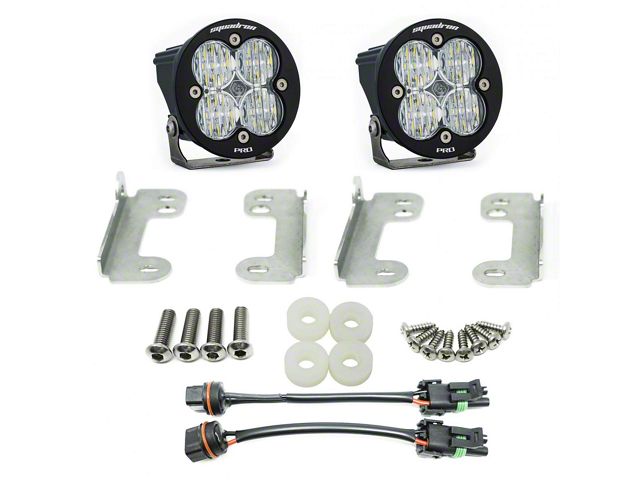 Baja Designs Features:Satisfactions Guarantee 30 Day Money Back GuaranteeLimited Lifetime Warranty Complete Purchase ProtectionuServiceReplaceable Lenses And OpticsClearViewAll The Light, Right Where You Need It.MoistureBlock Waterproof, Rain Proof, SubmersibleCopperDriveOnly LED Driven At 100 percent5000K DaylightLess Driver Fatigue, Natural Color Specifications (per light):Lumens: 4,900 Utilizing 4 LEDsWattage/Amps: 40W / 2.90ADimensions: 3.07 inch x 2.77 inch x 3.07 inchWeight: 12 ouncesLED Life Expectancy: 49,930 HoursFront Lens: Hard Coated PolycarbonateHousing: Hard Anodized and Powder Coated Cast AluminumBezel: Billet Machined AluminumHardware and Bracket Material: Stainless SteelExceeds MIL-STD810G (Mil-Spec Testing)Built-In Overvoltage ProtectionIP69K (Waterproof, Submersible to 9ft)IK10 Compliant (Mechanical Impact Testing)Includes:(2) Squadron-R Pro LED Lights(2) Sets of Jeep Wrangler JL Mounting BracketsPlug and Play wiring connectorsHardware