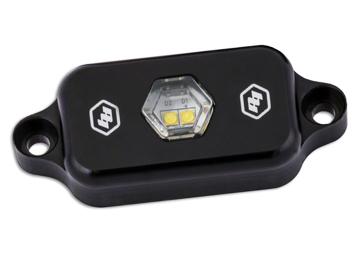 Superior LED Lighting. Your night travel doesn’t have to be dull. Light it up with the Baja Designs Rock white LED light. This 2.38” × 0.95” × 0.42” light employs the LED technology to give you perfect lighting through out the night. It also features a 180° optic wide enough to illuminate the places where you need it.