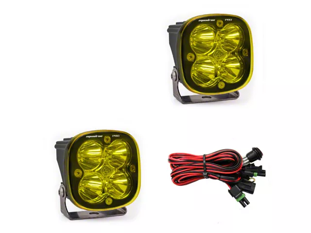 Squadron Pro Strong. Navigate the darkest of trails with full confidence with the Baja Designs® Squadron Pro Amber LED Light - Spot Beam - Pair. These pair of LED lights provide a more extended narrower 9° Focus for far-field applications using four LEDs for 4900 lumens of amber lighting. It is designed for the 1966-2025 Jeep CJ and Wrangler.