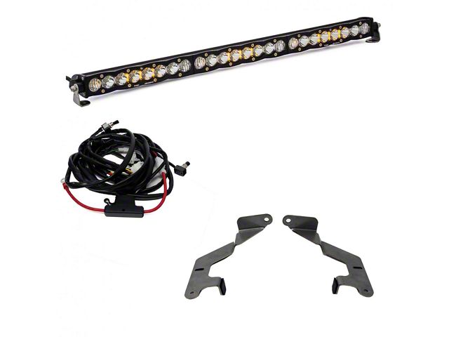 Baja Designs Features:Satisfactions Guarantee - 30 Day Money Back GuaranteeLimited Lifetime Warranty - Complete Purchase ProtectionuService - Replaceable Lenses And OpticsClearView - All The Light, Right Where You Need It.MoistureBlock - Waterproof, Rain Proof, SubmersibleCopperDrive - Only LED Driven At 100 percent5000K Daylight - Less Driver Fatigue, Natural ColorSpecifications:Lumens: 18,984 Utilizing 24 Cree LEDsWattage/Amps: 168W / 12.17ADimensions: 30 inch x 3 inch x 1.6 inchWeight: 6.5 lbsLED Life Expectancy: 49,930 HoursFront Lens: Hard Coated PolycarbonateHousing: Aircraft Grade Aluminum w/Mil-Spec Hard AnodizeBezel: Billet Machined AluminumHardware and Bracket Material: Stainless SteelExceeds MIL-STD810G (Mil-Spec Testing)Built-In Overvoltage ProtectionIP69K (Waterproof up to 9ft and Pressure Washable)IK10 Compliant (Mechanical Impact Testing)(S8 Patent D780,964)Kit Includes:S8 30 inch Driving ComboWiringHardwareBrackets