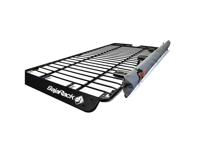 High Grade Quality. The Baja Rack Awning Mount is designed to fit perfectly into your flat rack, providing optimal support for any standard awning you wish to put up. Crafted with 1/8-inch and 3/16-inch steel and finished with a black powder coat, it is both resistant to rust and corrosion, making sure that it will last for years to come.