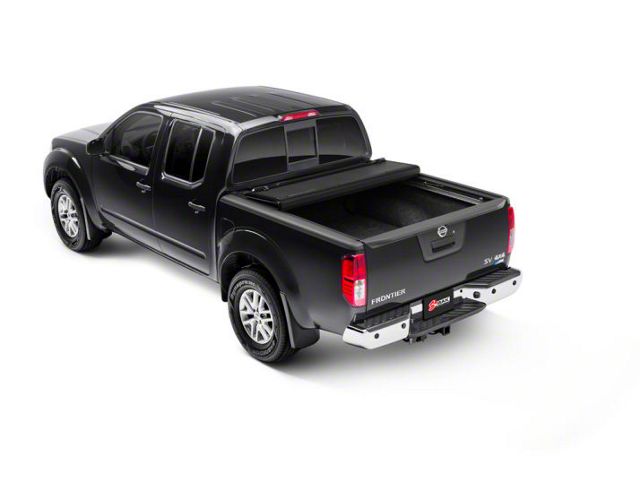 Secure Prop Rods. Made for the Nissan Frontier, this BAK Industries BAKFlip MX4 Tonneau Cover comes in a matte black finish and is clamped on. Built with a tailgate lock, this tonneau cover is pre-molded and die-cut with secure prop rod clips holding up its tri-fold cover design.