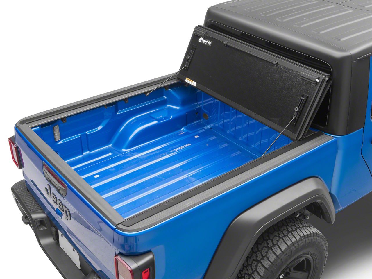 Provides Easy Bed Access. This tonneau cover comes in a tri-fold design, so you can easily flip its panels to get full or partial access to your Jeep’s bed. In addition, it sits nice and flush inside the bed rails, which means you can operate the cover without having to open the tailgate.