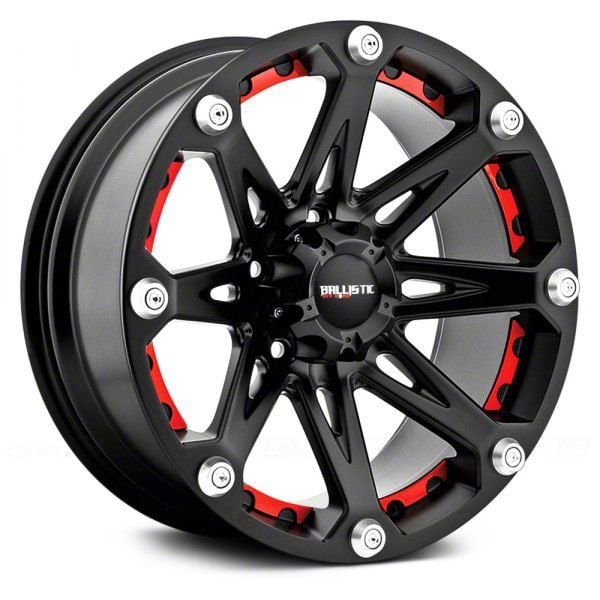 Ballistic Jester Flat Black 6-Lug Wheel; 20x9; 12mm Offset. The Ballistic Jester Flat Black 6-Lug Wheel offers a striking balance of style and refinement. Its unique design accentuates the vehicle's aesthetic, while the premium construction underscores its robust nature. This wheel is a perfect choice for those seeking both elegance and a strong visual statement.