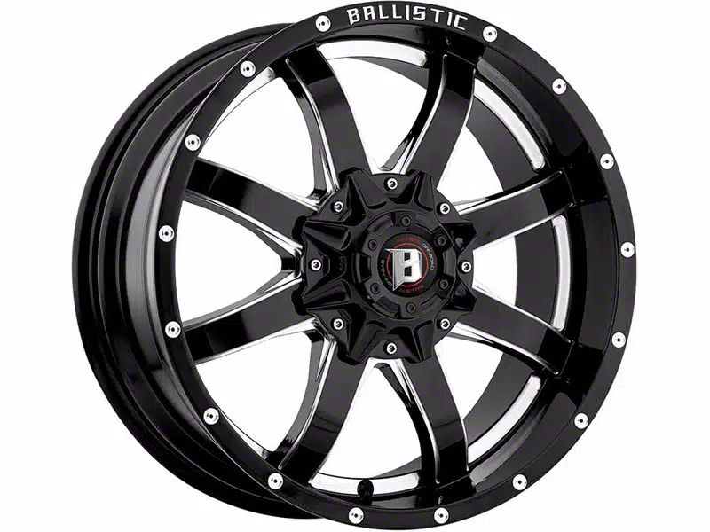 This 17x9 Ballistic Anvil Gloss Black Milled Wheel is completed in a high-quality gloss black finish with steel milled accents that will create a striking appearance. There's a durable clear coat that protects against driving hazards.