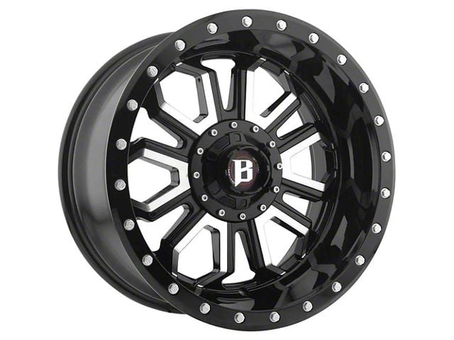 This 20x10 Ballistic Saber Gloss Black Machined Wheel is completed in a high-quality gloss black finish with machined accents that will make the wheel the envy of everyone. There is a durable clear coat that protects against driving hazards.One-Piece Cast Aluminum Construction. This wheel is manufactured using gravity casting. Gravity casting is the process of pouring a molten aluminum alloy into a wheel mold or form utilizing the earth's own gravity to help fill the mold. The result is a strong, durable wheel that has the same good looks as a more expensive wheel, at a fraction of the price.