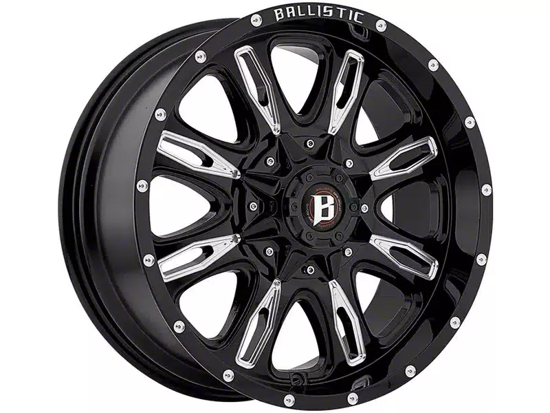Ballistic Scythe Gloss Black Milled Wheel; 17x9. The Ballistic Scythe Gloss Black Milled Wheel offers a striking balance of style and refinement. Its unique design accentuates the vehicle's aesthetic, while the premium construction underscores its robust nature. This wheel is a perfect choice for those seeking both elegance and a strong visual statement.