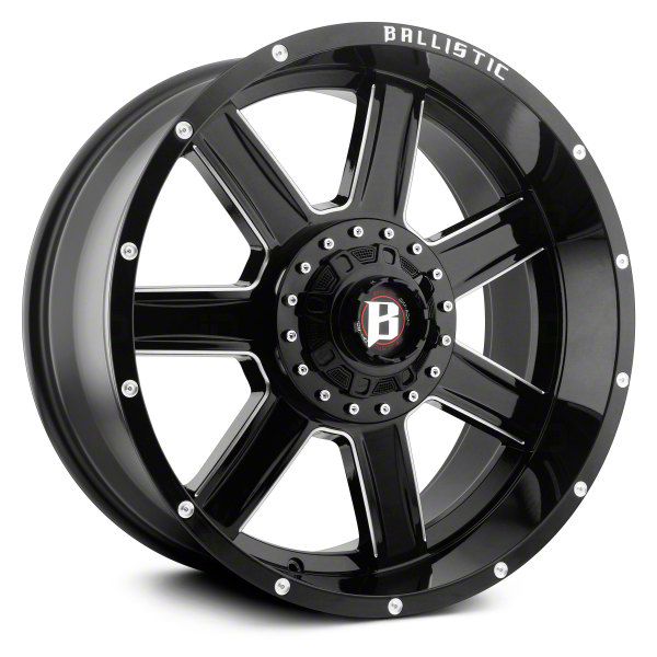 This 20x9 Ballistic Yukon Gloss Black Milled 6-Lug Wheel is completed in a high-quality gloss black finish with steel milled accents that will make the wheel the envy of everyone. There is a durable clear coat that protects against driving hazards.One-Piece Cast Aluminum Construction. This wheel is manufactured using gravity casting. Gravity casting is the process of pouring a molten aluminum alloy into a wheel mold or form utilizing the earth's own gravity to help fill the mold. The result is a strong, durable wheel that has the same good looks as a more expensive wheel, at a fraction of the price.