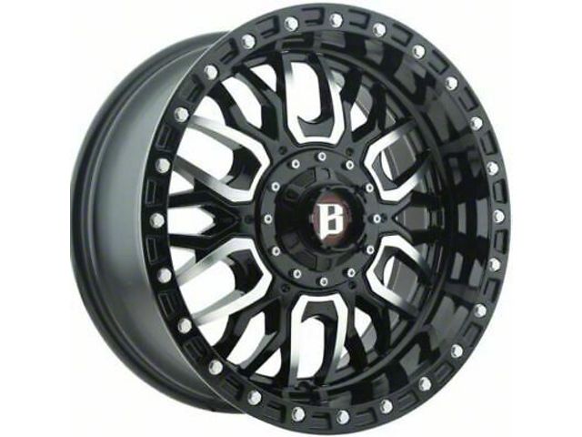 This 20x10 Ballistic Tomahawk Gloss Black Machined 6-Lug Wheel is completed in a high-quality gloss black finish with machined accents to create an impressive appearance. There's a durable clear coat that protects against driving hazards.
