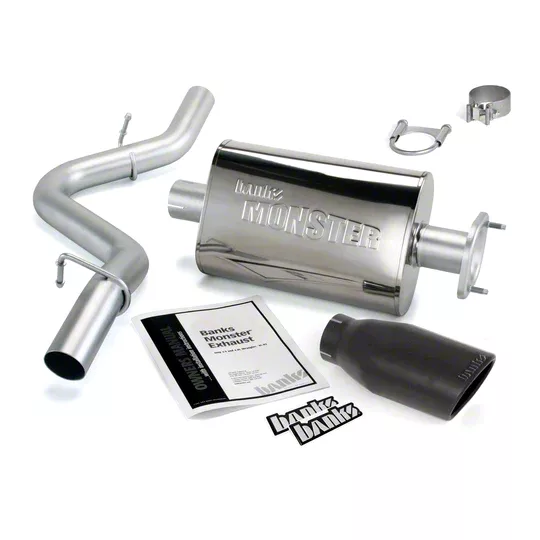 Amplify Exhaust Performance. The Banks Power Monster Cat-Back Exhaust System with Black Tip is designed to significantly improve your vehicle's exhaust performance by reducing back pressure and maximizing airflow. This system ensures better engine efficiency and lower exhaust gas temperatures.