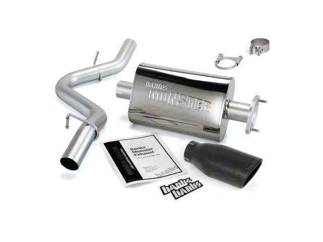 Amplify Exhaust Performance. The Banks Power Monster Cat-Back Exhaust System with Black Tip is designed to significantly improve your vehicle's exhaust performance by reducing back pressure and maximizing airflow. This system ensures better engine efficiency and lower exhaust gas temperatures.