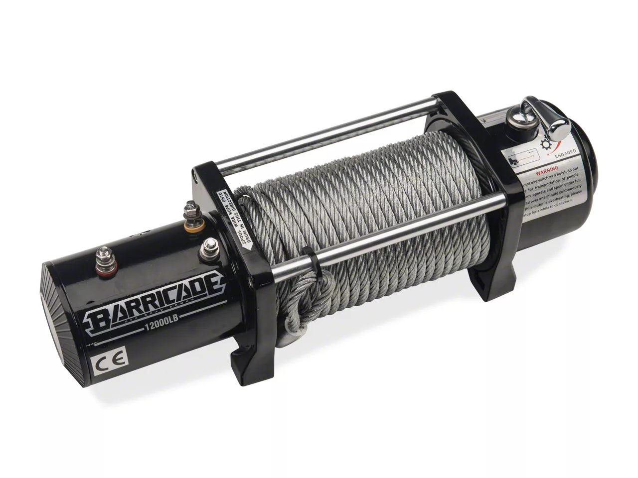Pulling Capacity. The Barricade Off-Road 12,000 lb winch delivers everything you need for a safe off-roading experience. If you consider yourself an off-roader, you know the importance of having a winch even on the easiest of trails. When you are searching for a winch, you want to make sure you get one worth your money, that will work every time, without ever having to worry if it will function or not. The Barricade Off-Road 12,000 pound winch is that winch. Barricade Off-Road builds this winch with budget and quality in mind. The 6.6 hp motor with a gearbox boasting a 187.2:1 gear ratio can pull you and your friends out of the messiest of situations, and is rated for a max pull weight of 12,000 lbs.