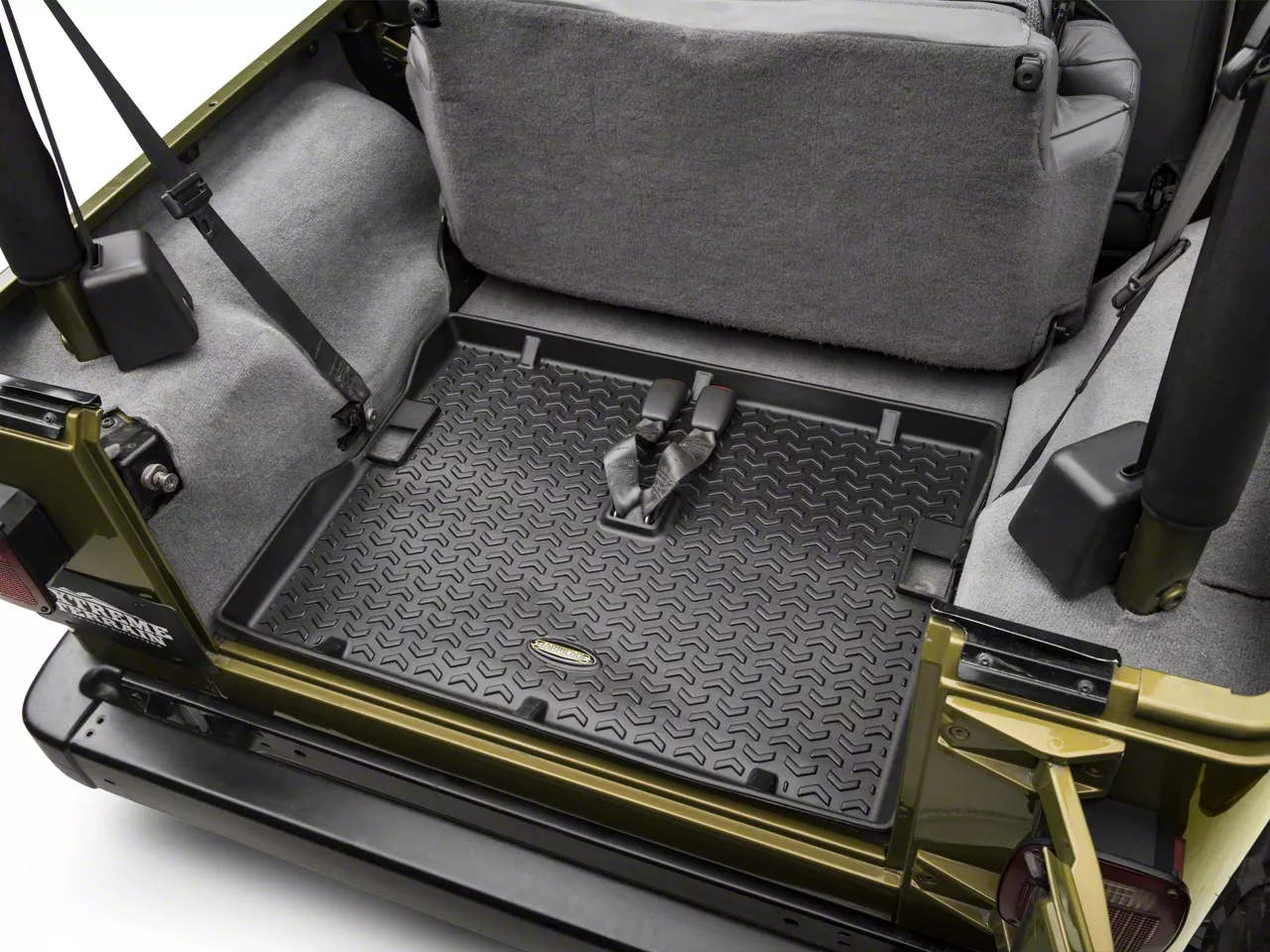 Practical Protection. Ensure your Wrangler's carpets aren't damaged or soiled by muddy gear or accidental spills with the Barricade Cargo Liner. Custom fit for your TJ, this cargo mat features rugged tread and high walls to contain spills for practical way to invest in your Jeep and maintain its factory appearance.