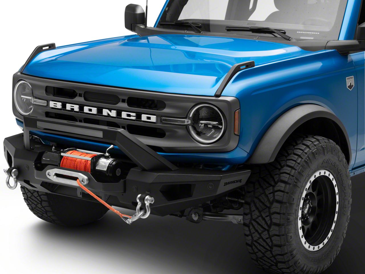 Rugged Styling and Protection. Does your 2021-2025 Ford Bronco pull double duty both on the street and out on the trail? If so, you may want to replace the inferior factory front bumper with one that can handle the extra abuse. Designed with the adventurous off-roader in mind, this Barricade HD Plate Style Full Width Front Bumper features a built-in winch plate that is capable of supporting a 12,000 pound winch. Additional features include an integrated grille guard over rider hoop and two high strength D-Ring mounts. Loaded with all these great features, this Barricade HD Front Bumper is ideal for those who don't shy away from adventure.