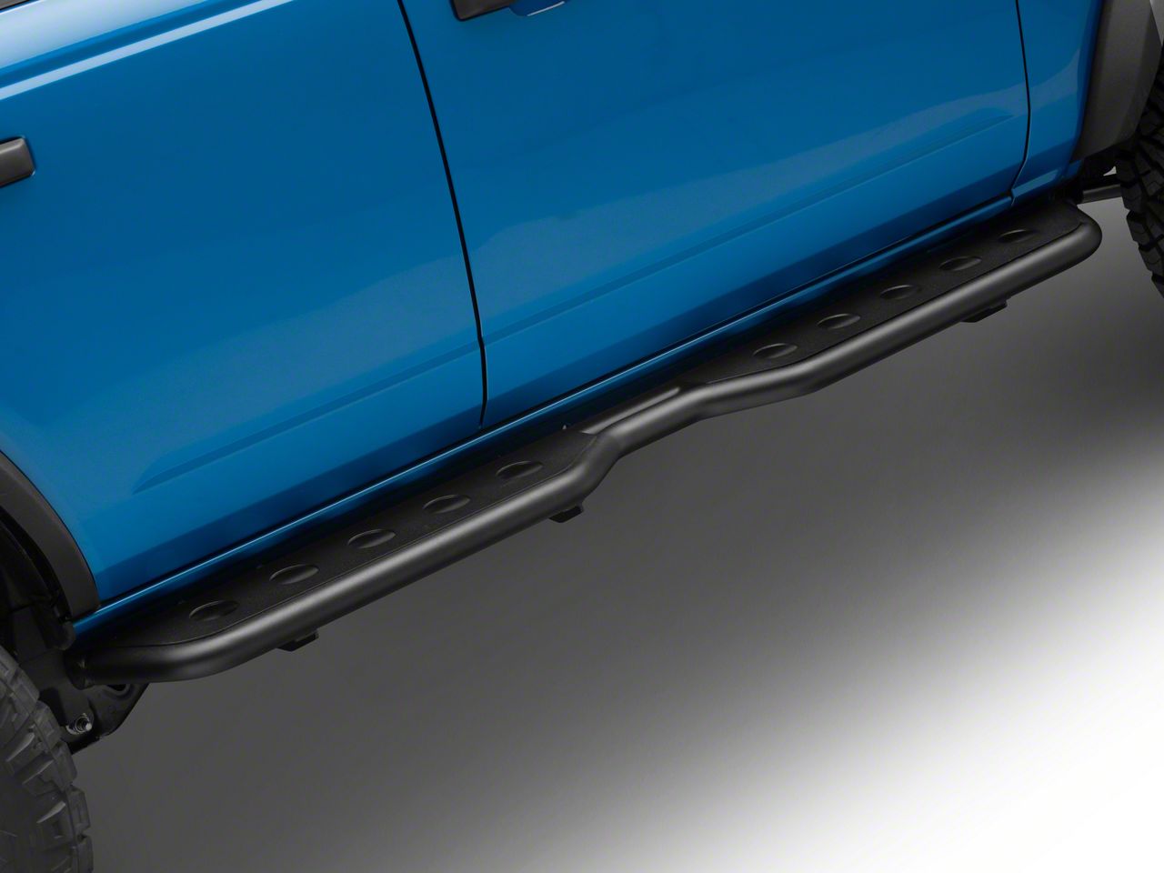 Application. These Barricade HD Rocker Steps; Textured Black are designed to fit 2021-2026 Ford Bronco 4-Door models. Sold as a pair, driver and passenger side are included.