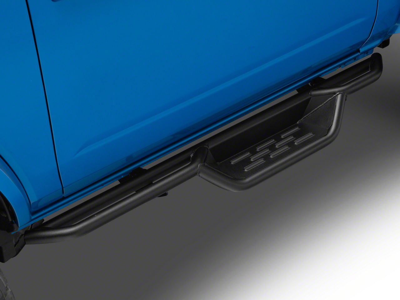 Rugged Style and Function. A set of Barricade's NB1 Drop Side Step Running Boards are an ideal way to make getting in and out of your 2-door Ford Bronco a much easier task. With an angular drop stepped design, these black textured Side Steps not only provide easy entry into your Bronco, but they will also give it a rugged off-road appearance. As an added bonus, these NB1 Drop Side Step Running Boards provide additional protection from both road and trail hazards.