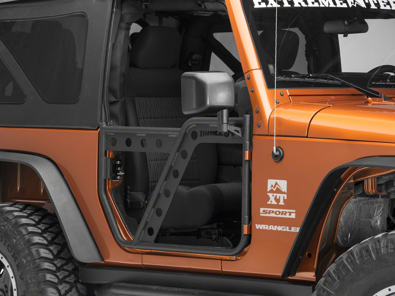Safari Styling. Add exciting safari styling to your 2007-2018 JK Wrangler with a set of Barricade Front Extreme HD Adventure Doors. Barricade designed their tubular Adventure Doors to not only look great, but to help increase your field of view, which is a great plus when trying to negotiate tricky terrain. Besides increased visibility, these Tubular Doors will provide a safe open air driving experience that driving without your JK's doors simply can't offer.