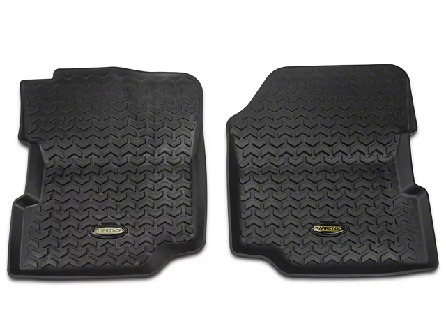 Reliable Protection. Cover up stains and existing damages while protecting your rig from new spills and mud with the Barricade Front Floor Liners. Custom fit for your YJ, these floor mats feature an aggressive tread design to help channel mud or water and keep your carpets fresh. They're perfect for preventing muddy prints on your carpet from four legged friends or to keep snow and water off your floor during colder months.