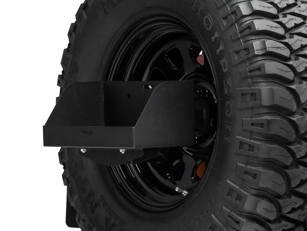 Be Prepared. Eliminate the risk of being stranded without fuel by bringing along a traditional Jerry Can with the MORryde Spare Tire Jerry Can Holder. This mount installs easily to your Wrangler's spare tire mount and features a tall tray for a traditional Jerry Can or NATO style gas can to give you instant access for refueling on the fly.