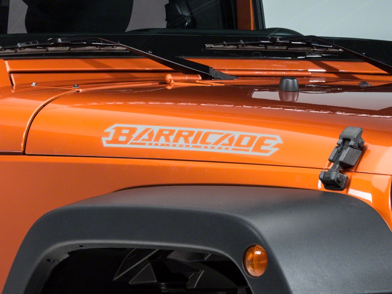 Application. This Barricade Off-Road gloss silver vinyl hood decal fits all 1966-2026 Jeep CJ and Wrangler.
