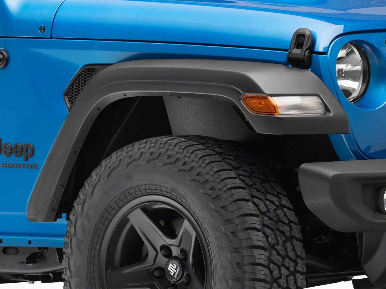 Application. These Barricade Aluminum Inner Fender Liners; Front and Rear are designed to fit 2020-2025 Jeep Gladiator JT models. Sold as a set of four.