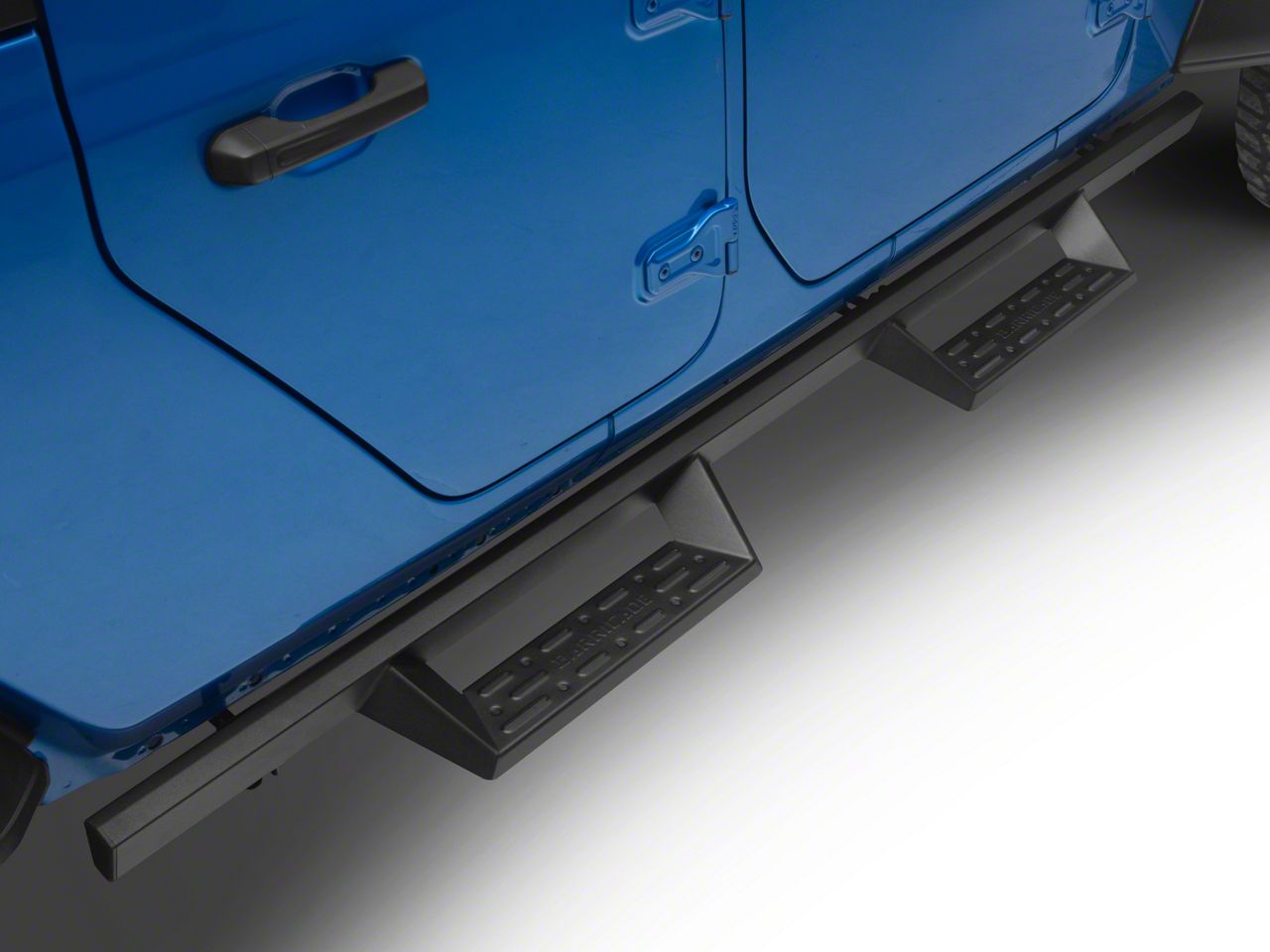 Style and Function. Make getting in and out of your 2020-2026 Jeep Gladiator JT much easier by installing a set of Barricade's Canyon Drop Steps. With an angular drop stepped design, these Side Steps not only provide easy entry, but they also give your rig a rugged off-road appearance. As an added bonus, these Canyon Drop Steps can provide additional protection from both road and trail hazards.