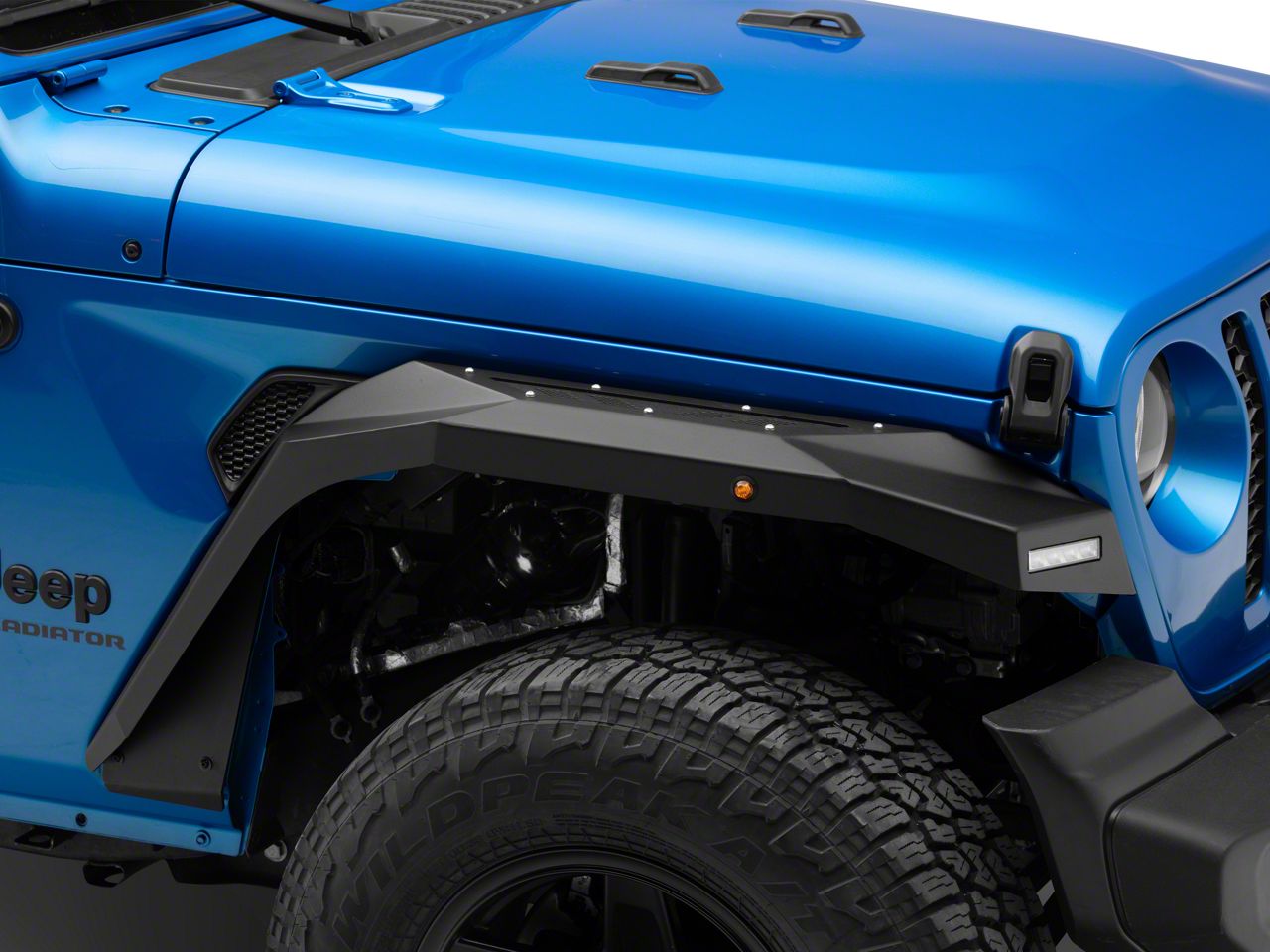 Application. These Barricade X-Series Front Fender Flares with LED DRL and Marker Lights; Black Inserts are designed to fit 2020-2026 Jeep Gladiator JT models. Driver and passenger side included.