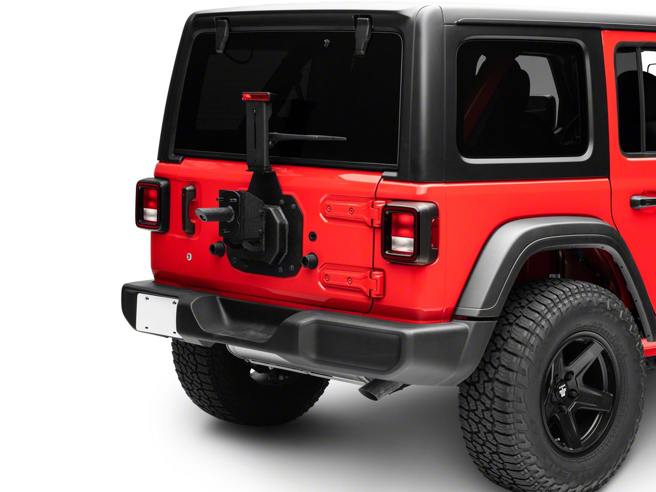 Application. This Barricade Heavy Duty Spare Tire Mount is designed to reuse the factory camera and 3rd brake light on 2018-2026 Jeep Wrangler JL models, Excluding 4xe.