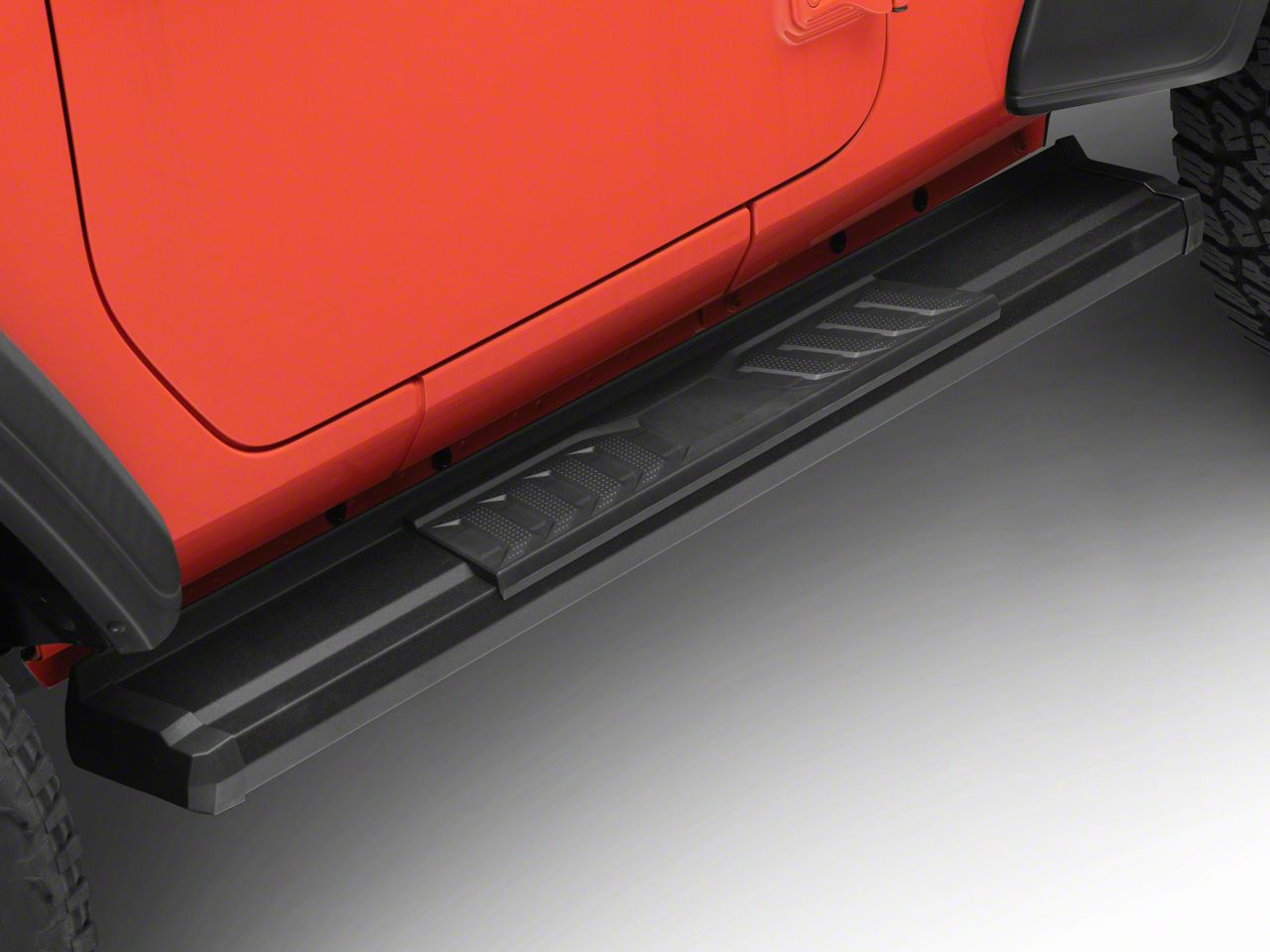 Function and Style. Barricade's S6 Running Boards are an ideal exterior upgrade for those that find they have difficulty getting in and out of their 2-Door Jeep Wrangler JL. These S6 Running Boards will not only provide you with a convenient step for easy entry, but they will also give your Wrangler rugged styling that looks great both on and off-road. Additionally these Running Boards double as side armor to provide additional protection from road and trail hazards.