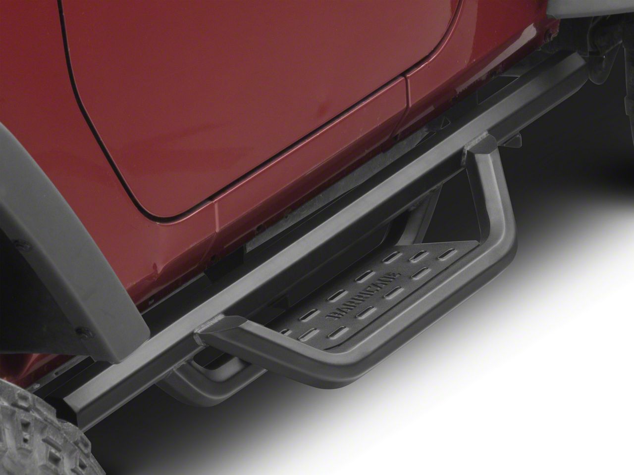 Function and Style. Make getting in and out of your 2007-2018 Jeep Wrangler JK 2-Door much easier by installing a set of Barricade's TCX Drop Side Step Bars. With an angular drop stepped design, these Side Steps not only provide easy entry, but they also give your Wrangler a rugged off-road appearance. As an added bonus, these Drop Side Step Bars can provide additional protection from both road and trail hazards.