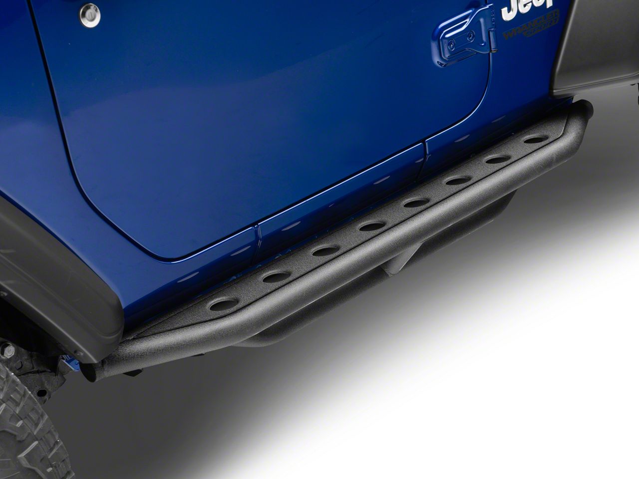 Application. These textured black Barricade Off-Road Tubular HD Rock Sliders are specifically designed to fit 2018-2026 Jeep Wrangler JL 2-door models. Driver and passenger side included.