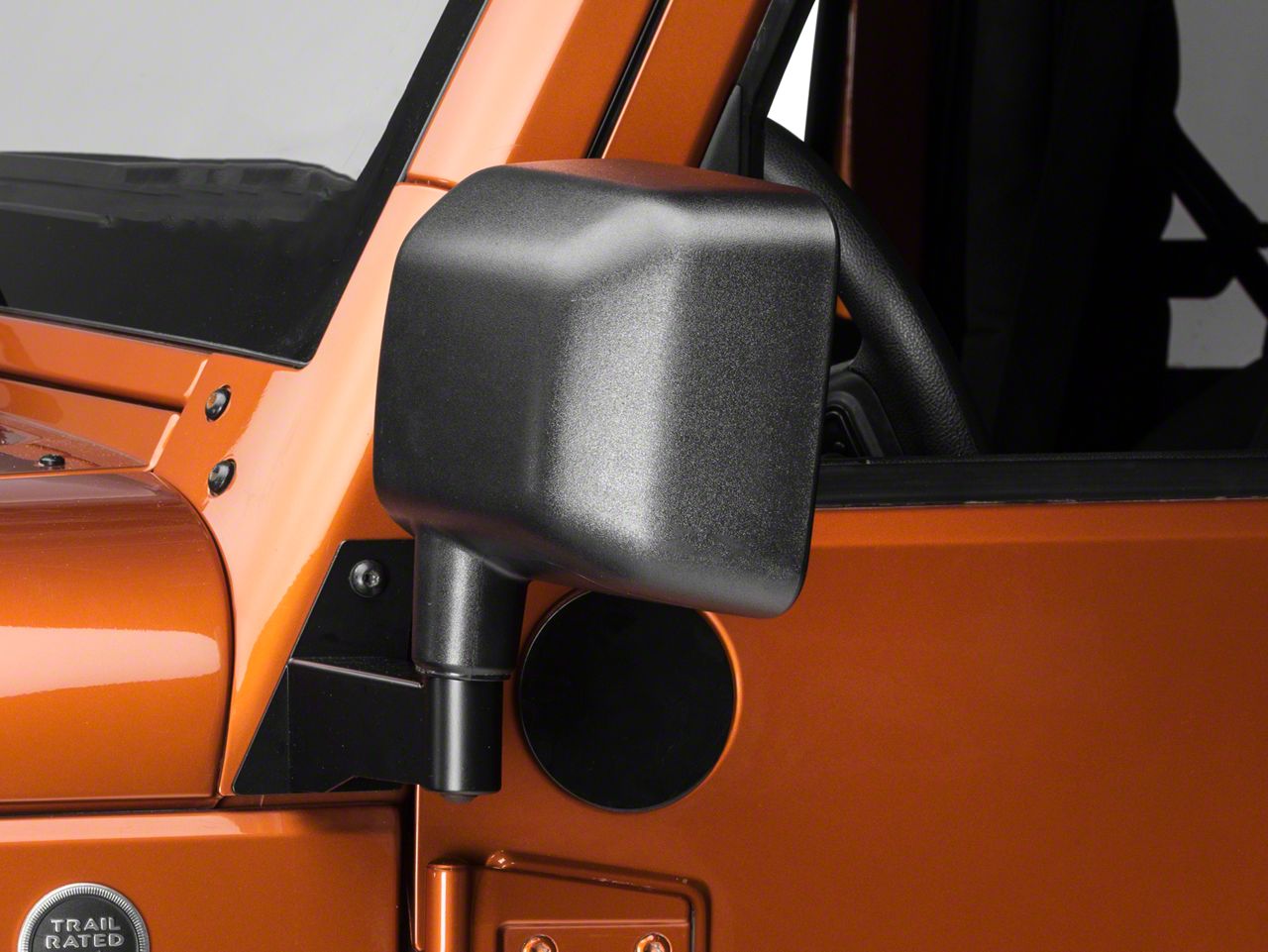 Relocates Mirrors From Door To Body. If you love driving your Jeep around in the summer months without the doors on, a Barricade Off-Road Mirror Relocation Kit will relocate the factory mirrors from the doors to the windshield frame keeping you street legal and improve your range of visibility at the same time.