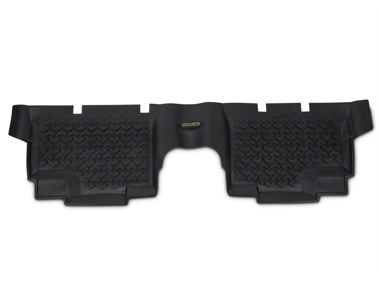 Reliable Protection. Maintain your JKU's expensive carpets with the Barricade Rear Floor Liner. Custom fit for 4 door models, this one piece Rear Floor Mat features a rugged tread designed to help prevent water, mud and spills from reaching your carpets for a like new appearance. It's perfect for the family Jeep or those who pack in the passengers for messy expeditions.