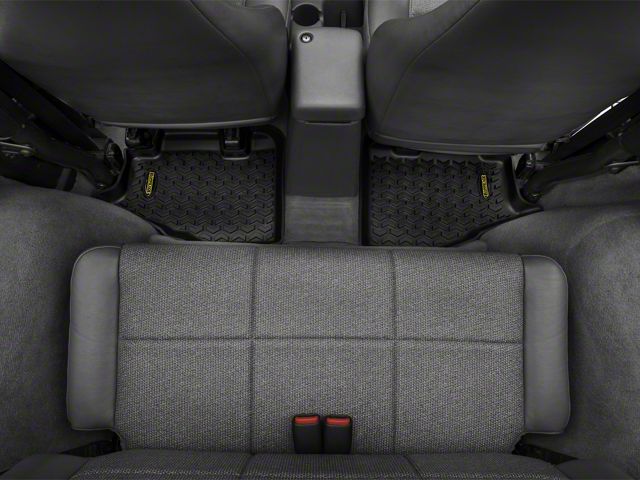Reliable Protection. Prevent muddy or messy passengers from damaging your TJ's carpets with the Barricade Rear Floor Liners. Custom fit for your TJ, these rear liners feature aggressive tread designed to contain spills, mud or any other debris that may come in. Perfect for the off road family or those traveling with kids, these liners will help keep your carpets looking fresh and new.