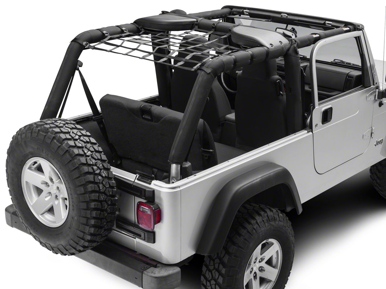 Keep Your Pet Contained. Once of the hardest things about off roading or taking an extended trip in your Jeep is whether or not your pet will stay in place and not topple out. With the RedRock 4x4 Rear Overhead Net System, you will not have to worry about that. The netting is rated up to 1,100 pounds and will contain your pet and cargo for the journey ahead.