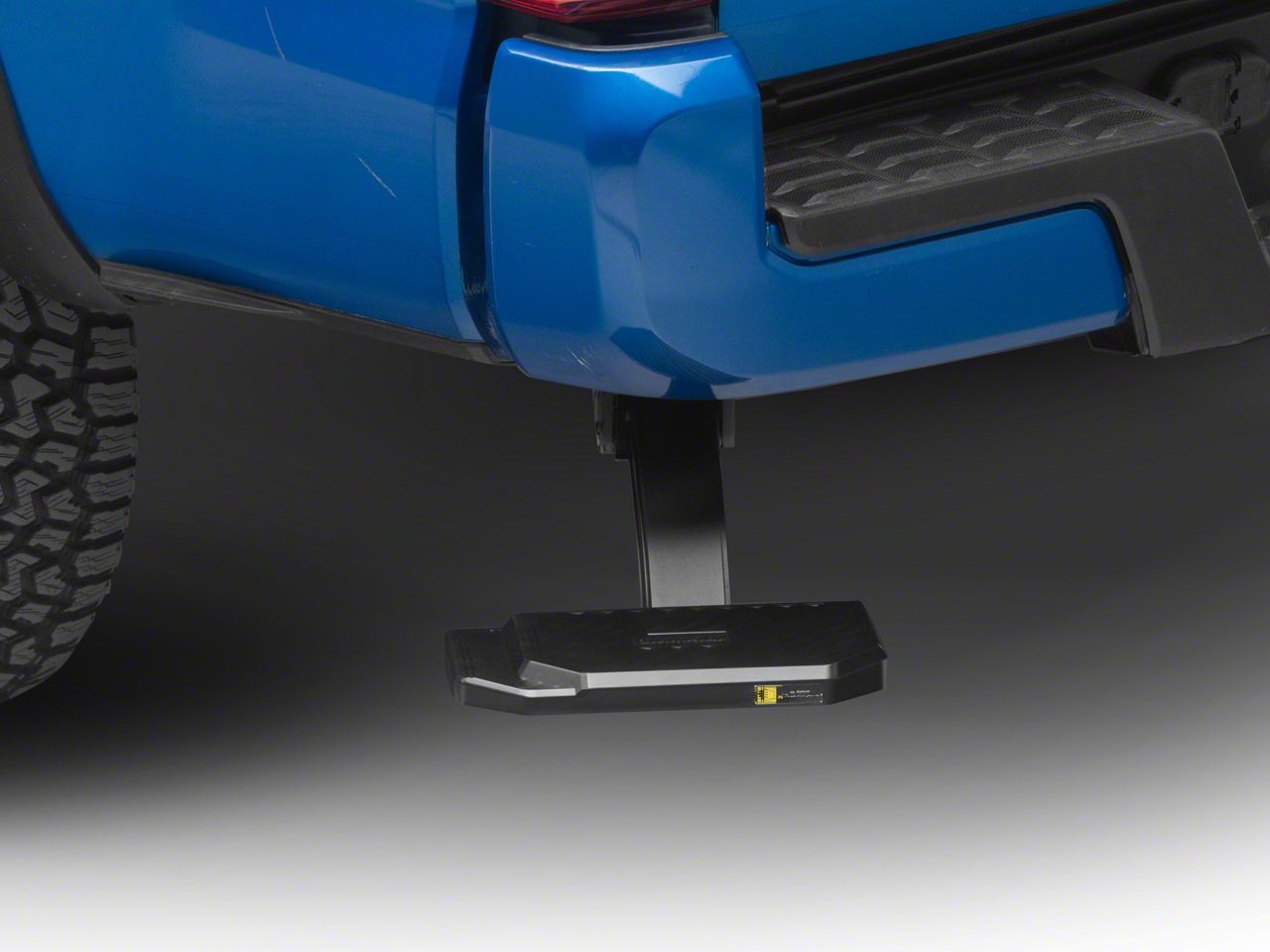 Easy Access. Make loading and unloading your Tacoma much easier by installing a Barricade Bed Corner Step. This foot operated drop down Step provides a convenient step up for easy access to your Tacoma's bed and when not in use it folds up out of the way.