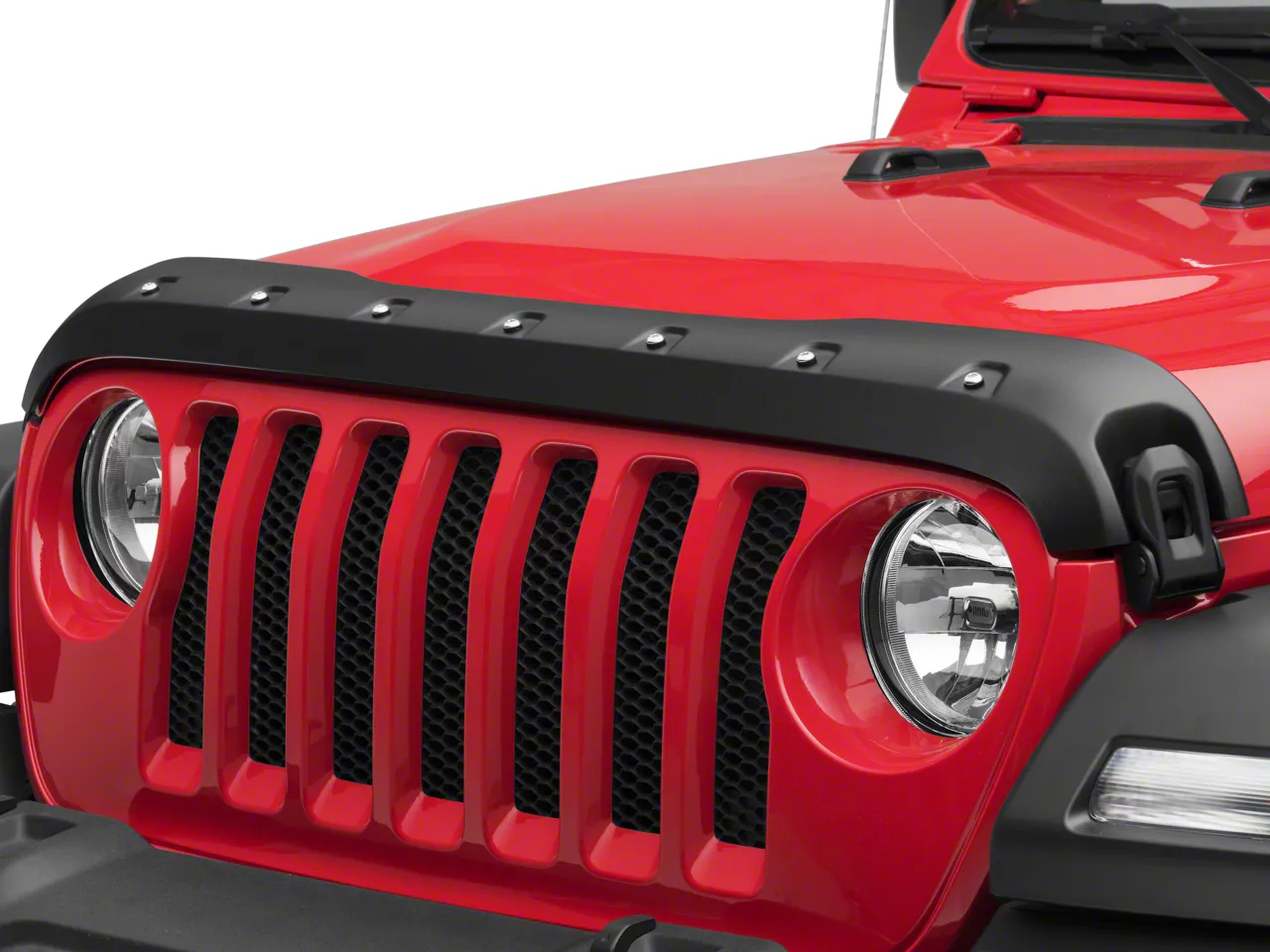 Extra Front End Protection. This Barricade Premium Bolt-On Look Hood Deflector is an excellent way to protect the leading edge of your JL Wrangler's hood from stones, rocks, and other road debris. A hood deflector sometimes called a Bug Guard will give you all of the extra benefits of a traditional automotive bra without the hassles.