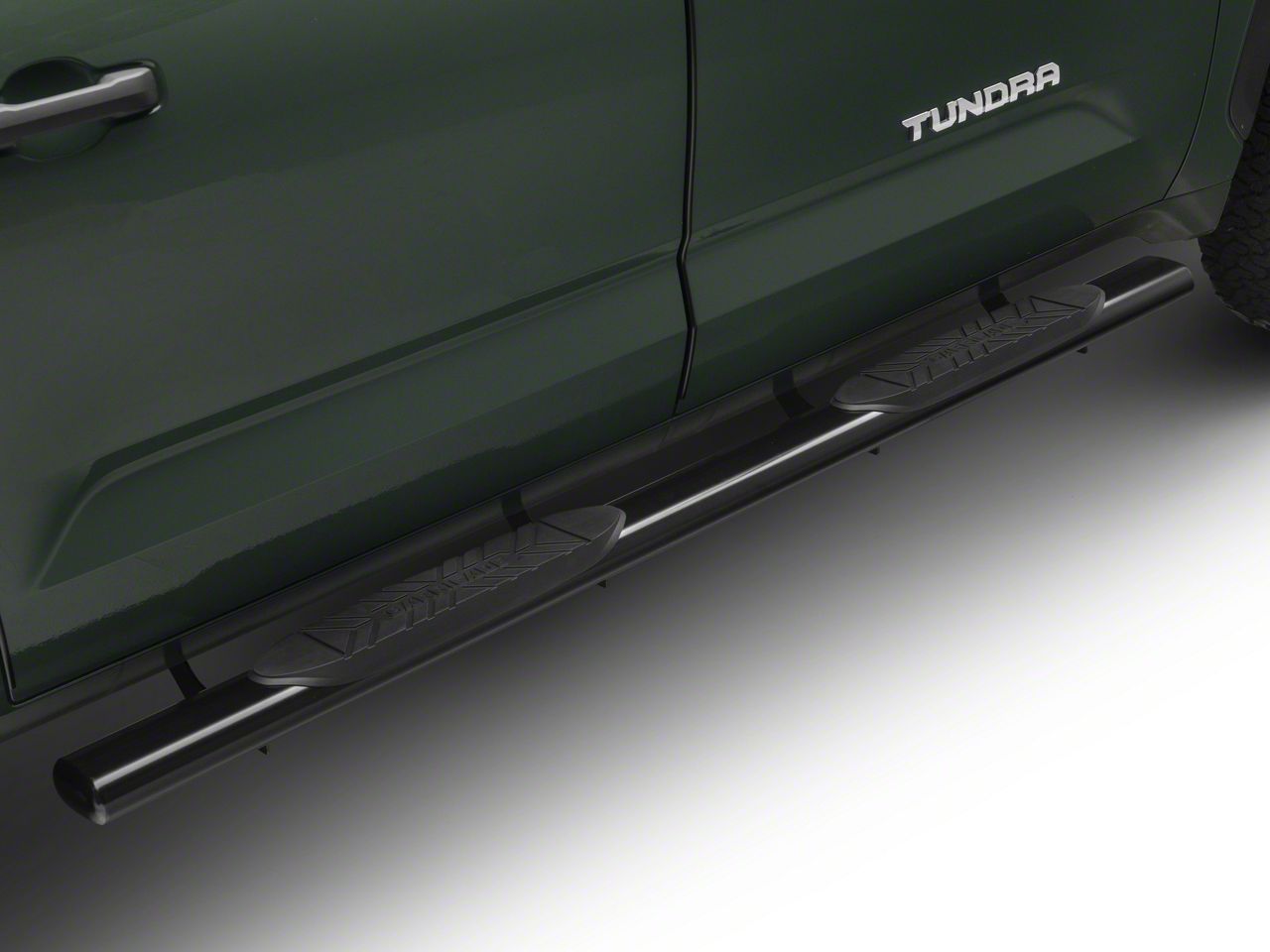 Style and Function. A set of black Barricade 5-Inch Oval Straight End Side Step Bars will make the strenuous task of getting in and out of your Toyota Tundra CrewMax much easier. These Barricade Side Steps will provide you with a convenient step for easy entry, while giving your Tundra a rugged off-road appearance. In addition, these Side Steps also double as side armor to provide additional protection from both road and trail hazards, as well as dreaded parking lot door dings.