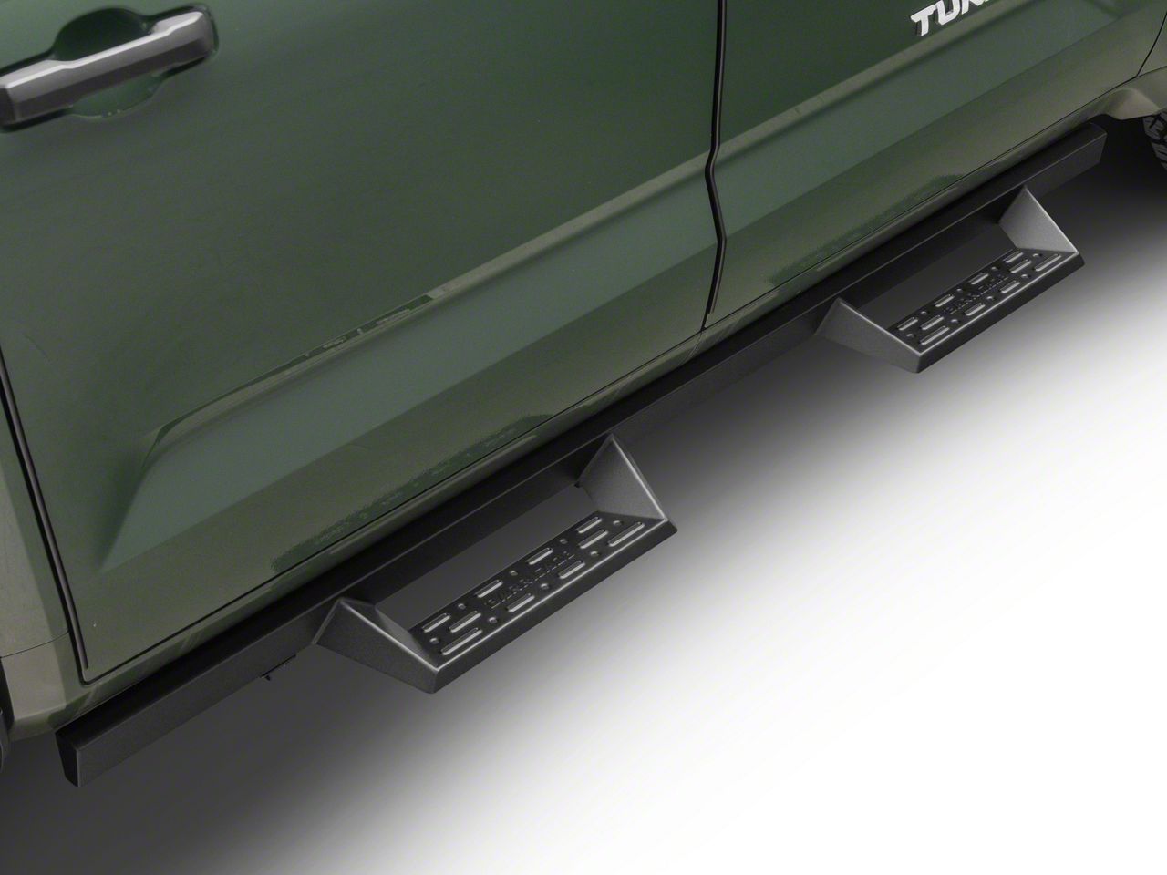 Style and Function. Make getting in and out of your 2022-2026 Toyota Tundra CrewMax much easier by installing a set of Barricade's Canyon Drop Steps. With an angular drop stepped design, these Side Steps not only provide easy entry, but they also give your rig a rugged off-road appearance. As an added bonus, these Canyon Drop Steps can provide additional protection from both road and trail hazards.