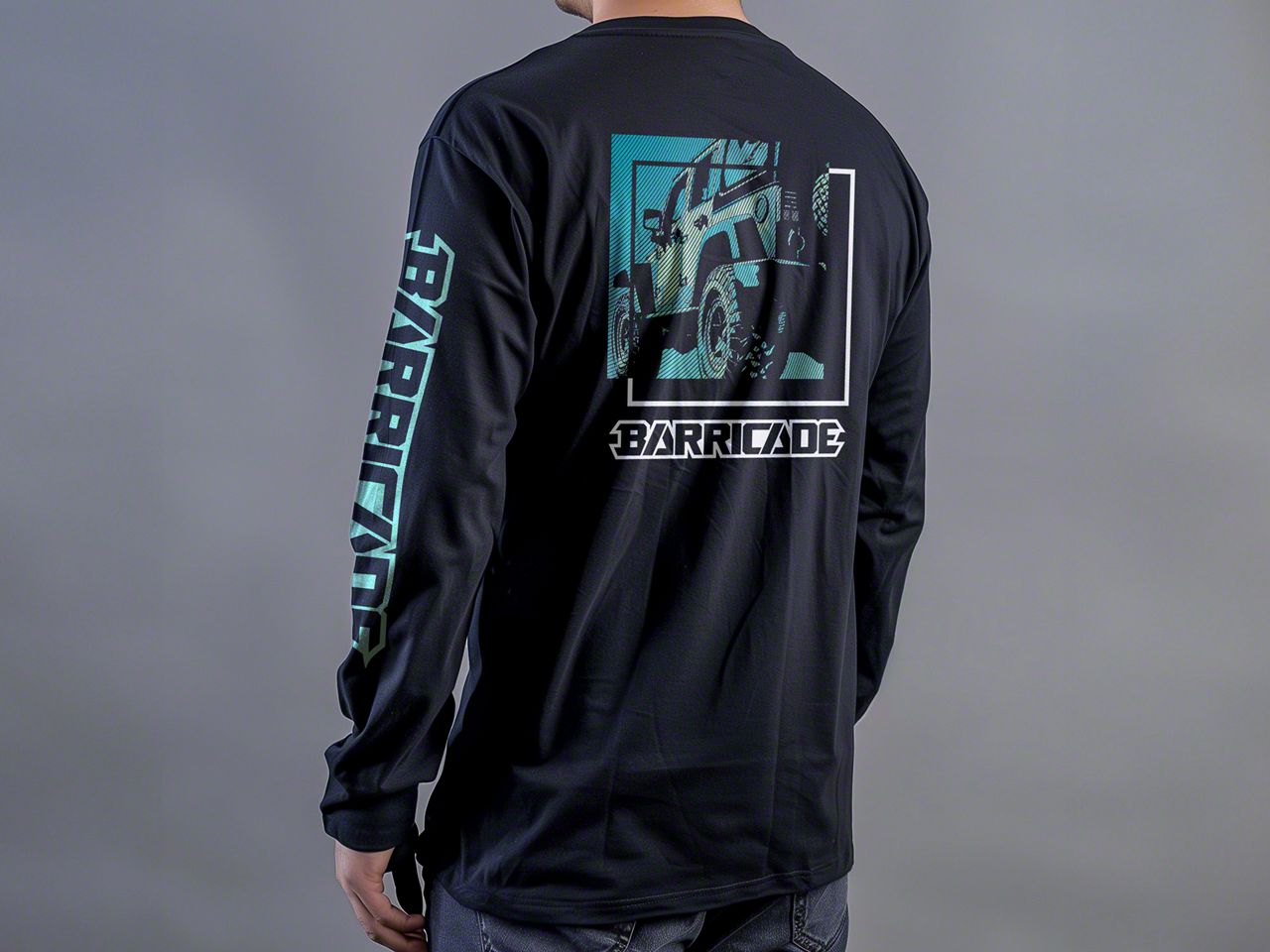 Barricade Apparel. One of the best ways to show your Barricade appreciation is with this Barricade Horizon Long Sleeve T-Shirt. With a Jeep on the back, "BARRICADE" under that and "BARRICADE" down the left sleeve, you'll leave nothing to the imagination about where your aftermarket auto parts loyalty lies.