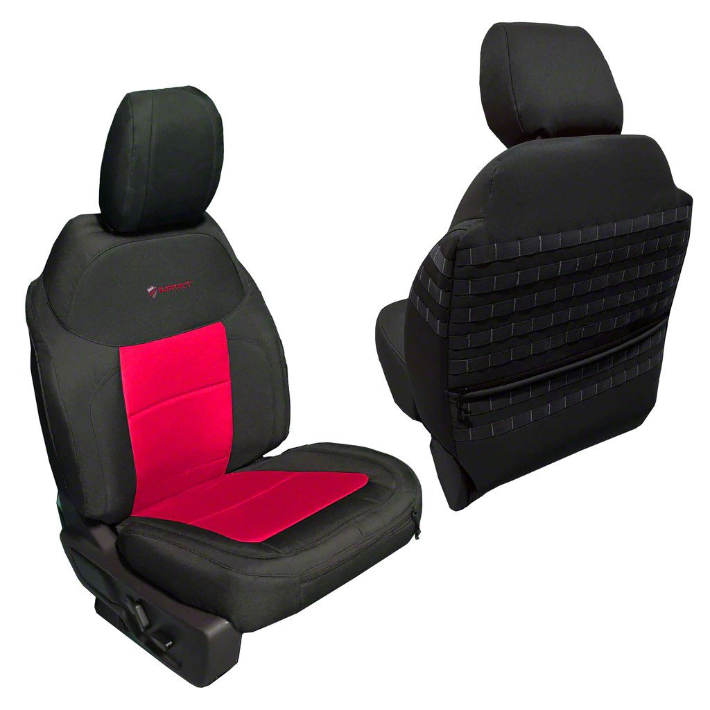 Application. The Bartact Tactical Front Seat Covers; Black/Red fits 2021-2026 Bronco models.