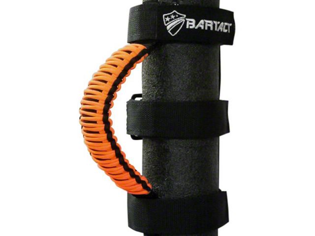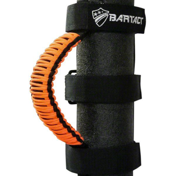 Off-Road Styling And Comfort. The Bartact Paracord Grab Handles make for the ideal functional aesthetic upgrade on an off-road vehicle. These black and orange handles will be a good fit if you want better access to your Wrangler, more comfort, and improved stability. Bartact sells its grab handles in pairs that can be used for front and rear installations.