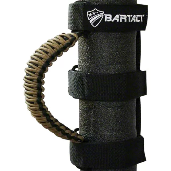The Strongest Handles. Jeeps and buggies don’t always have solid grab handles. That’s why Bartact designed these durable Black/Coyote Tan Paracord Grab Handles. Any roll bar should work with these, whether it’s padded or unpadded.