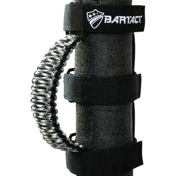 Off-Road Camo Styling. Does your Jeep need better handles? Reliable handles on a Wrangler can completely change your off-roading experience. The black and urban camo style of the Bartact Paracord Grab Handles can be the perfect addition to your vehicle. Flexible, durable, and vastly different from traditional handles, these accessories can elevate your comfort level and give you more stability on rugged, bumpy terrain.