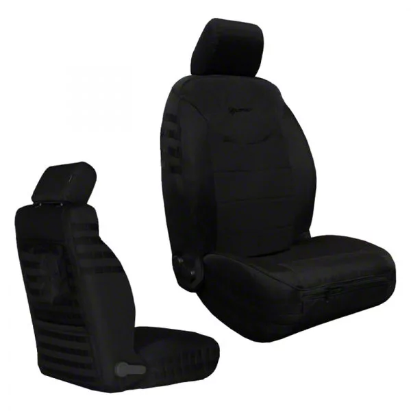Formidable Styling and Superb Comfort. These Bartact Tactical Series SRS Air Bag Compliant Front Seat Covers in Black are designed to offer more than just superb seat protection. They also deliver unrelenting comfort and intimidating appeal. These covers’ heavy-duty fabric comes with durable stitching to ensure a snug fit and easy installation. And with their tactical features, these seat covers offer impressive versatility that makes your Jeep ready for any adventure.