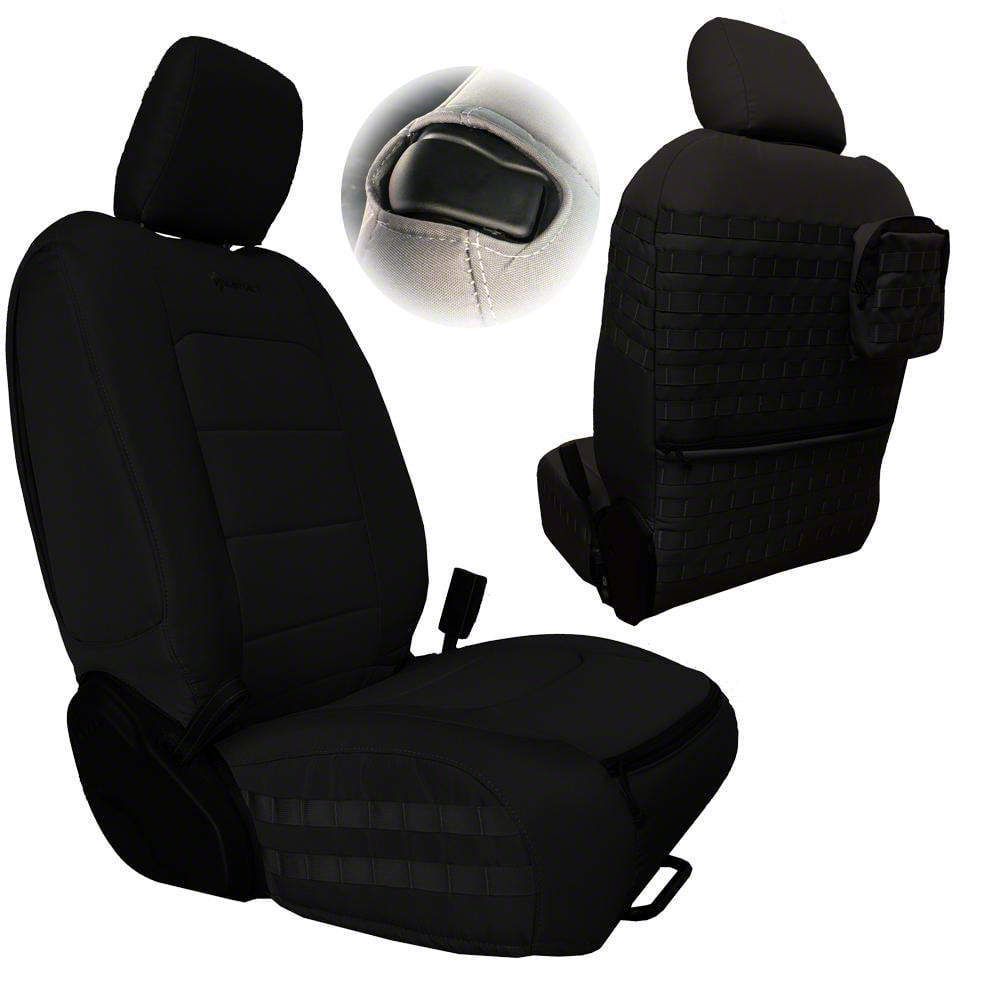 Application. These Bartact Tactical Series SRS Air Bag Compliant Front Seat Covers in Black are designed to fit all 2018 to 2026 Jeep Wrangler JL 2-Door models.